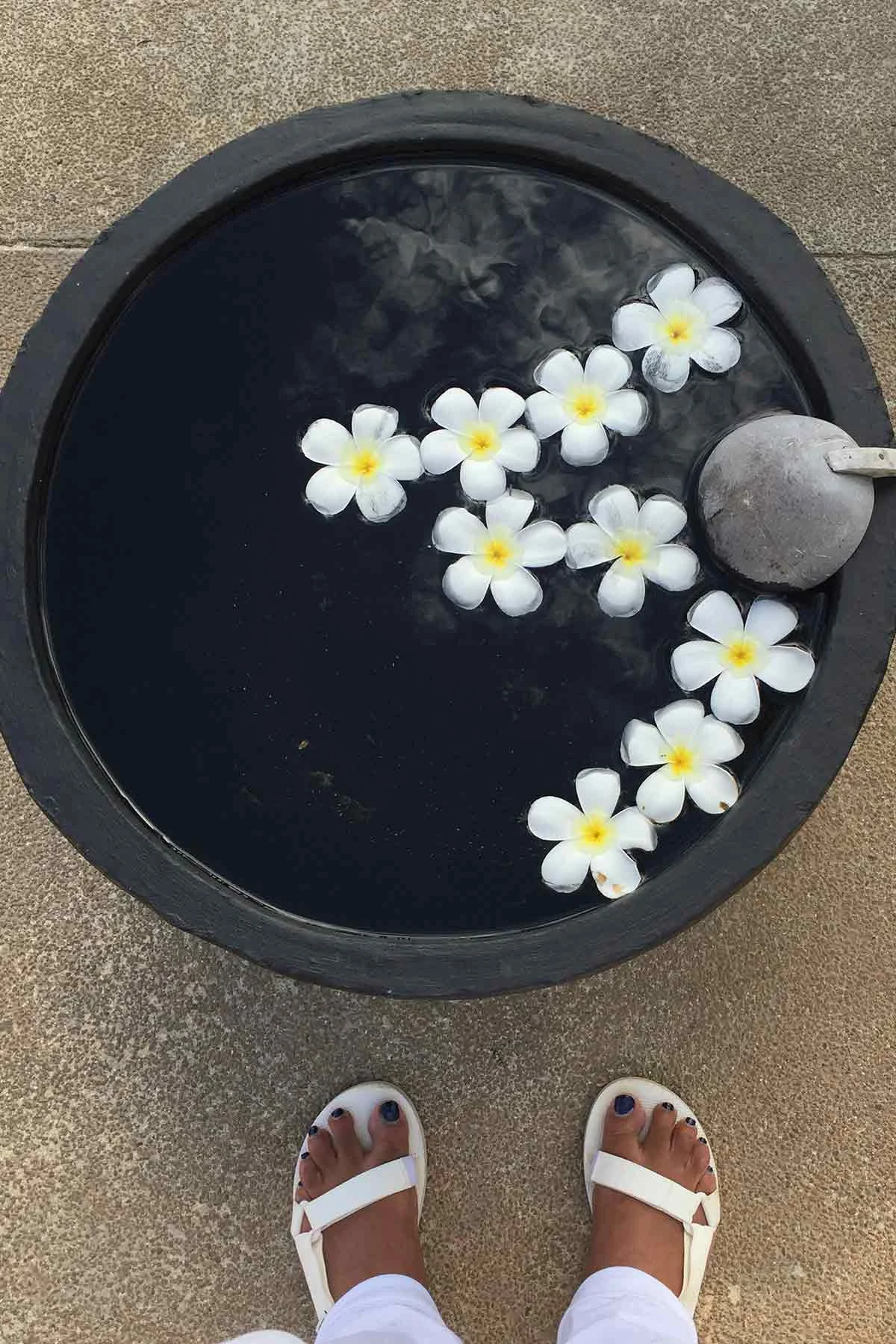 In Asian countries such as Bali, India, Sri Lanka, and Thailand it is quite common to find a water bowl filled with an arrangement of floating flowers and foliage as a form of reverence towards nature, a sign of welcome to visitors and a way to adorn your home with something beautiful.